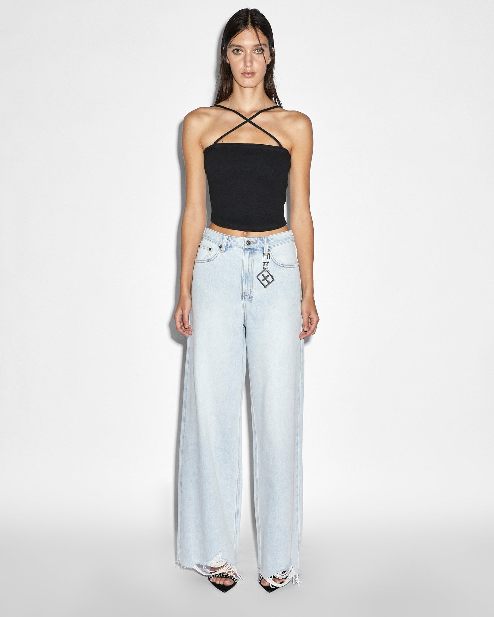 The Black Arise Tube Top is a fitted tube top with a scooped front hemline. Crafted from premium black cotton/elastane rib. this style features detachable straps and internal jelly tape. allowing for strapless wear. On the back. you’ll find t-box and Ksubi SOTT logo embroidery. For an updated look. style the removable straps crossed at the front.
