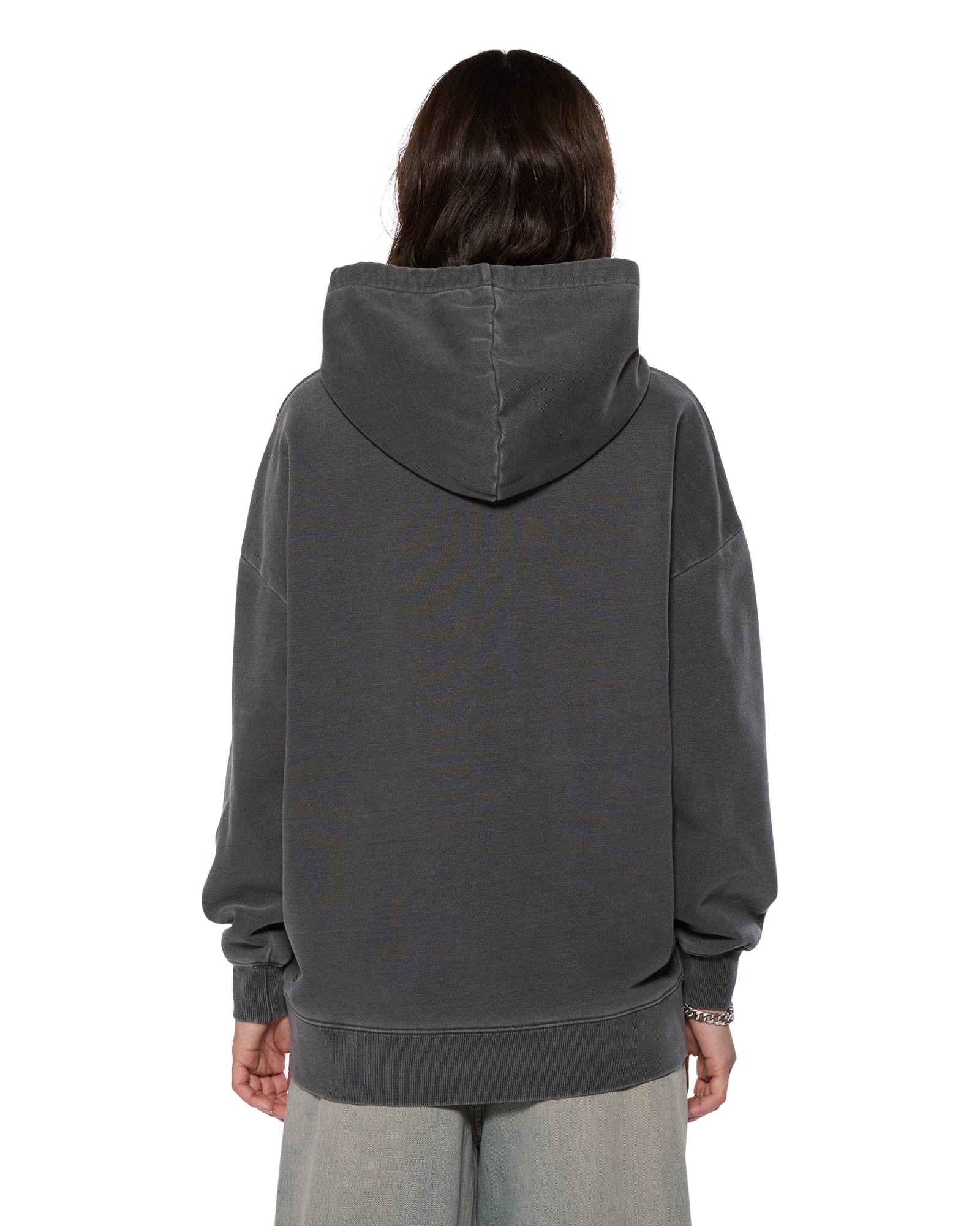 The Kingdom OH G Hoodie in Charcoal offers an oversized fit with a dropped shoulder and long sleeves. featuring ribbed cuffs and hem band. and a front pouch pocket. Made from premium loopback cotton fleece in washed charcoal for a vintage handfeel. it features exclusive Ksubi graphic art on the front and T-box embroidery on the back.