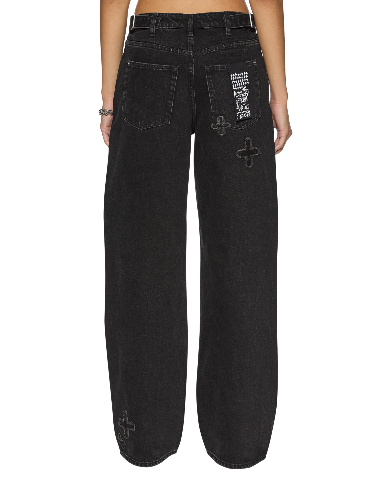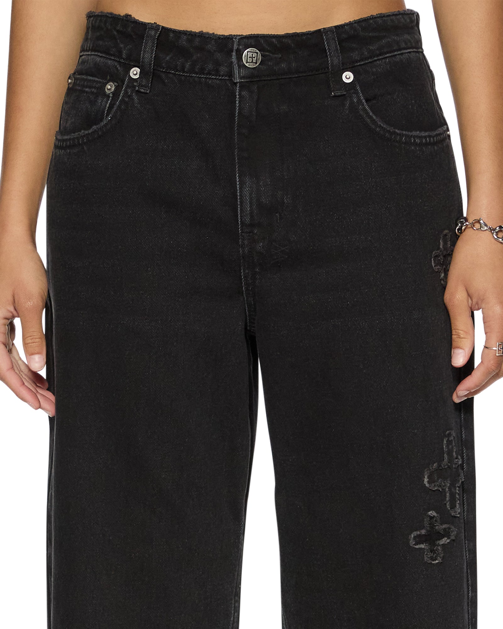 The Low Rider Noir Kraftwerk is a low-rise. relaxed straight-leg jean with classic five-pocket styling. Made from premium rigid denim in washed black. it features Ksubi ‘plus’ applique denim patches on the front and back. along with T-box and 3×4 embroidery branding and anti-silver branded hardware. The adjustable waist tabs with branded buckle allow for a customizable fit. making it easy to style low-rise or higher on the waist. For a polished look. size down. or size up for a more relaxed fit. Complete the look with the Syndicate Xtra Rework Tank in Coal for an effortlessly chic outfit.
