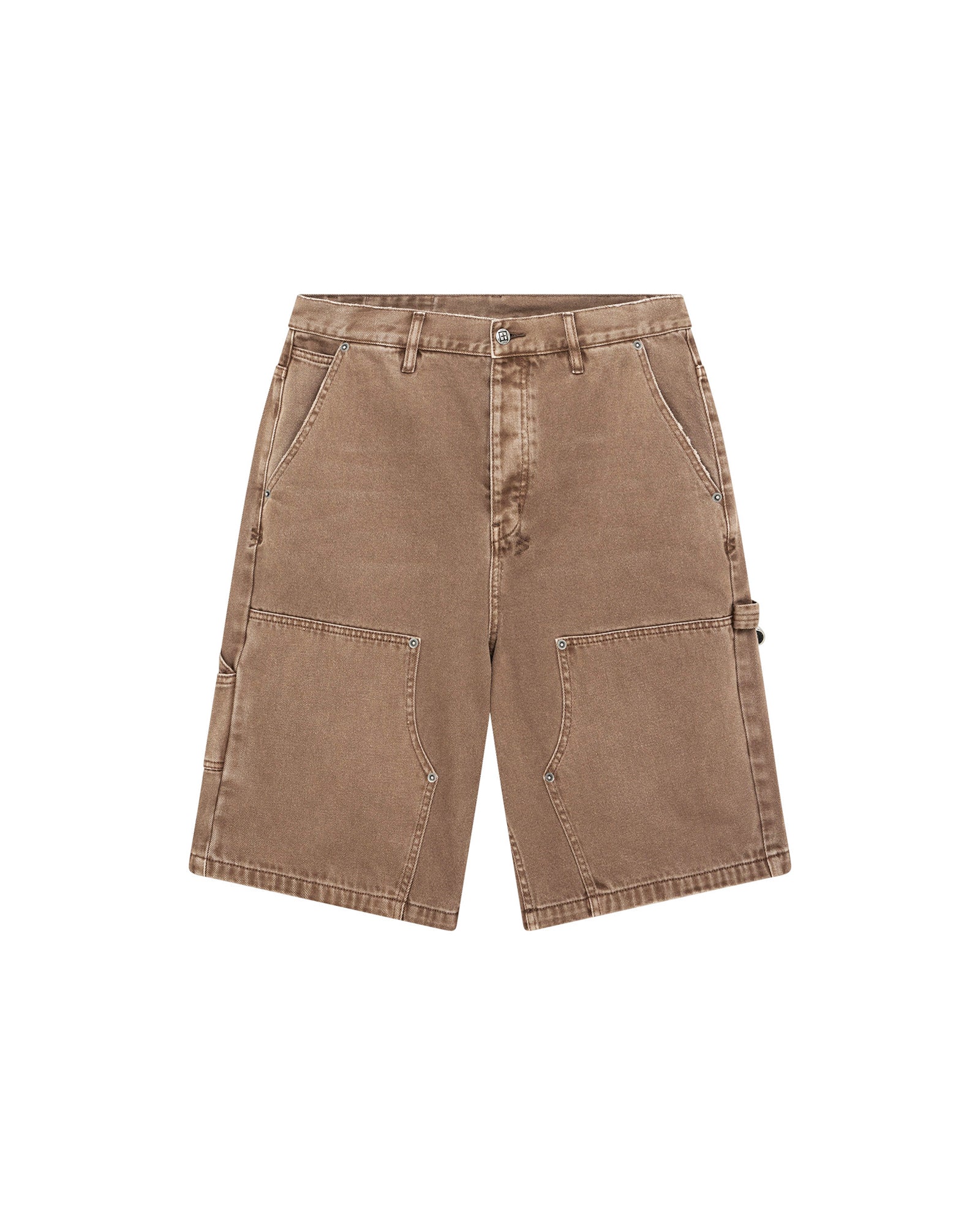 The Maxx Operator Short Oak is an exaggerated wide-leg jean short with a long rise featuring carpenter panels. right leg carpenters pocket tab. cut-away pockets. and back patch pockets. Made from premium rigid brown denim with an overdye and stone wash. it is finished with signature T-box and 4×4 embroidery and Ksubi branded hardware.
