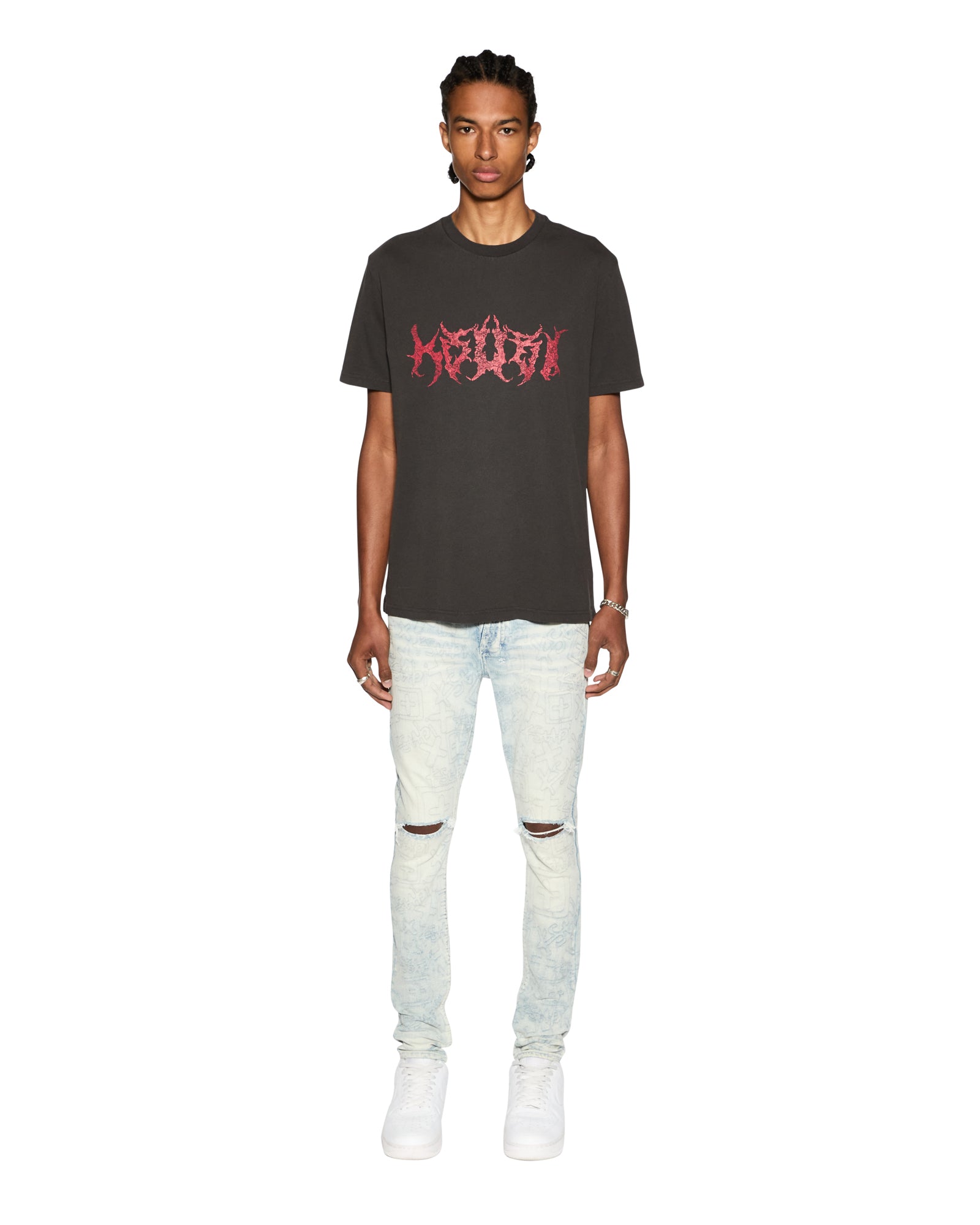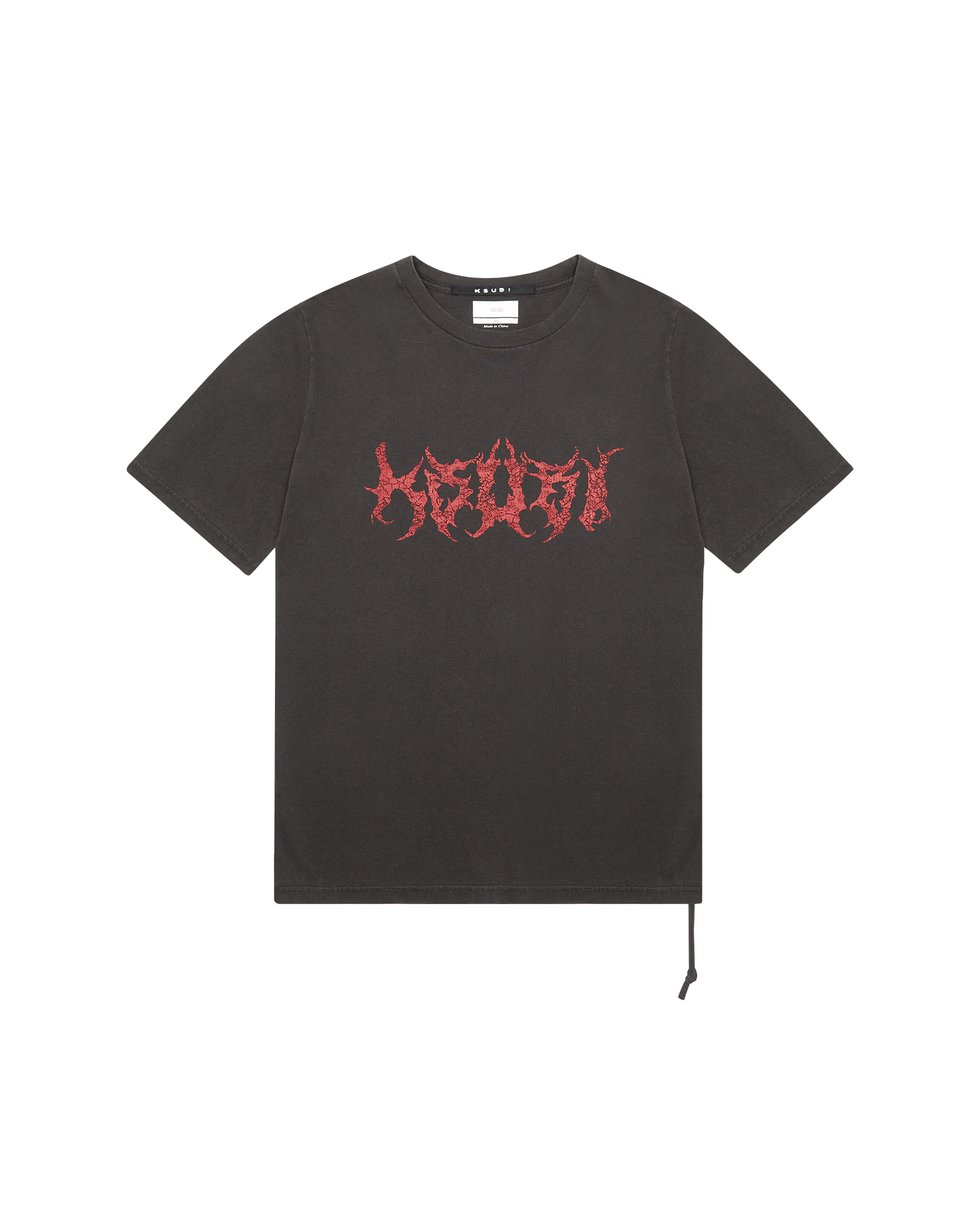 The Sabbath Kash Ss Tee Faded Black is a short sleeve t-shirt made from 100% cotton in a dyed faded black. Seasonal sceen printed artwork is featured on the front and back. Branded details include rats tail and Ksubi T-box branding.