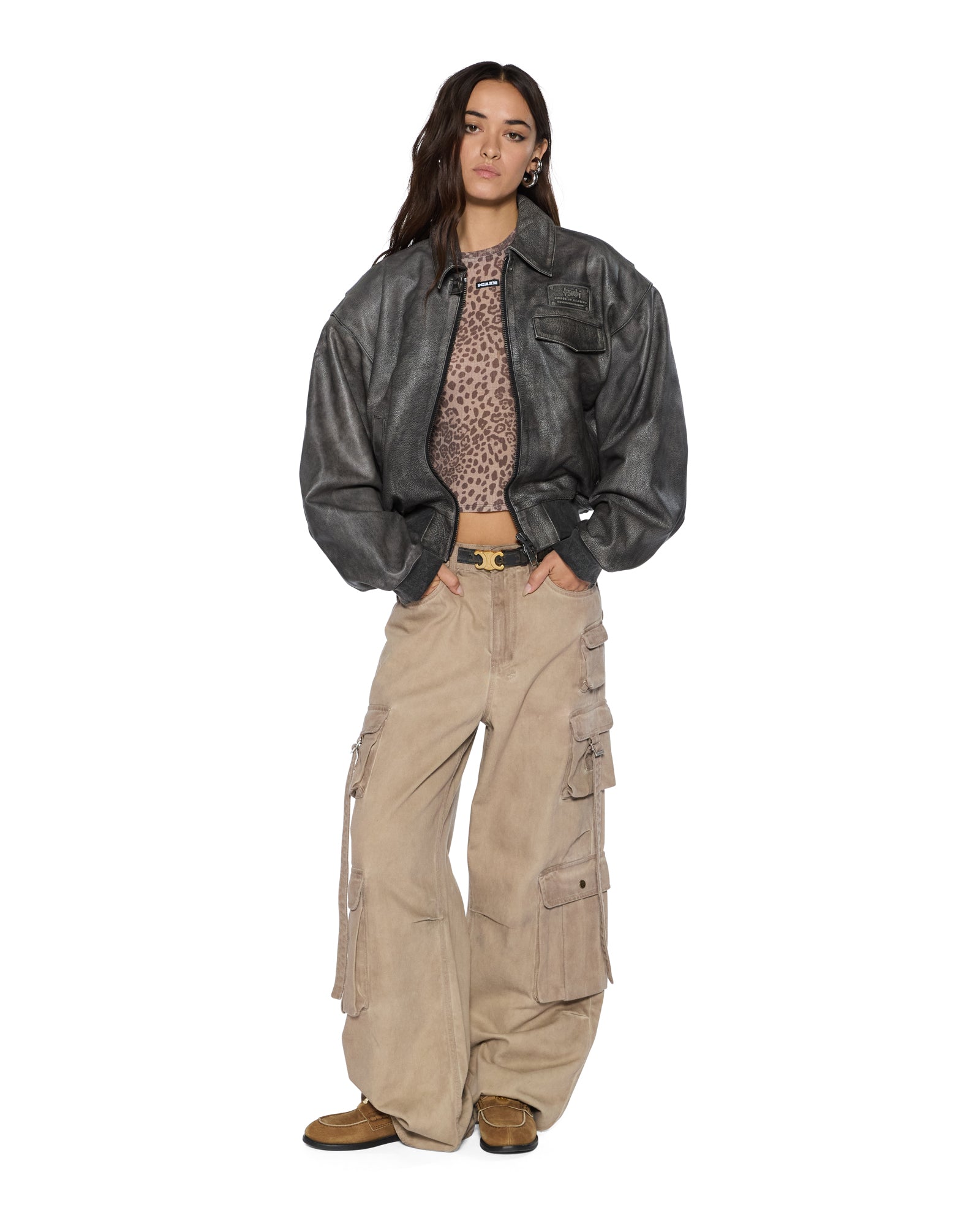 The Staple Ss Tee Leopard is a slim fit mock neck cap sleeve tee made from premium European 100% sheer rib cotton in a seasonal leopard print. Finished with a woven SOTT label on the front and Ksubi T-box embroidery. this style pairs effortlessly with the Ksuper Cargo Terra for an elevated street look.