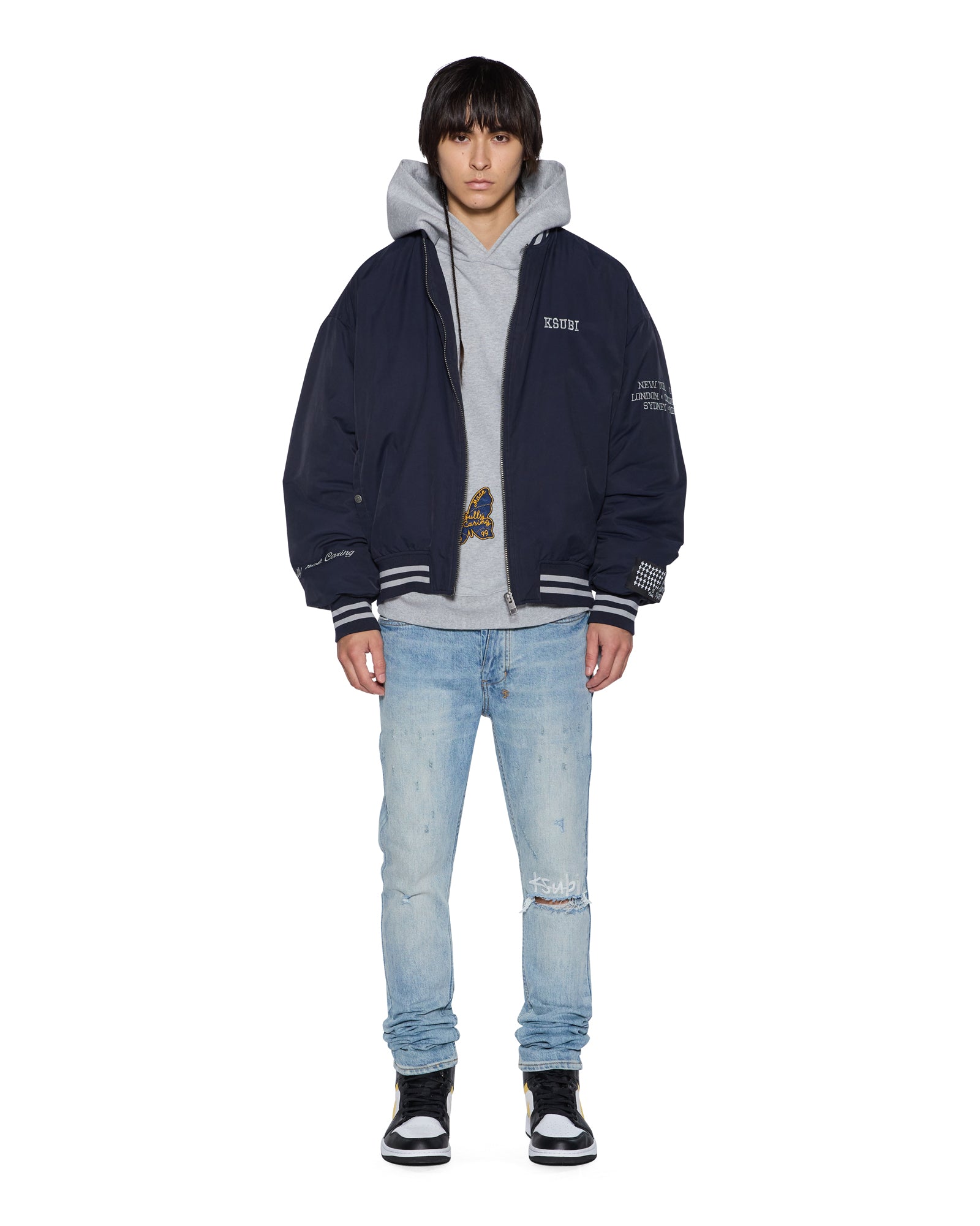 The Van Winkle Manhattan 1999 is a mid rise five pocket full length skinny jean. Made from a premium comfort stretch indigo denim with a heavy stone wash. it is constructed with unique angled belt loops and front fly seam detail. Featuring seasonal embroidery on the front and back of the garment. finished with T-box and 4×4 embroidery. ghost patching detailing. and Ksubi branded hardware.