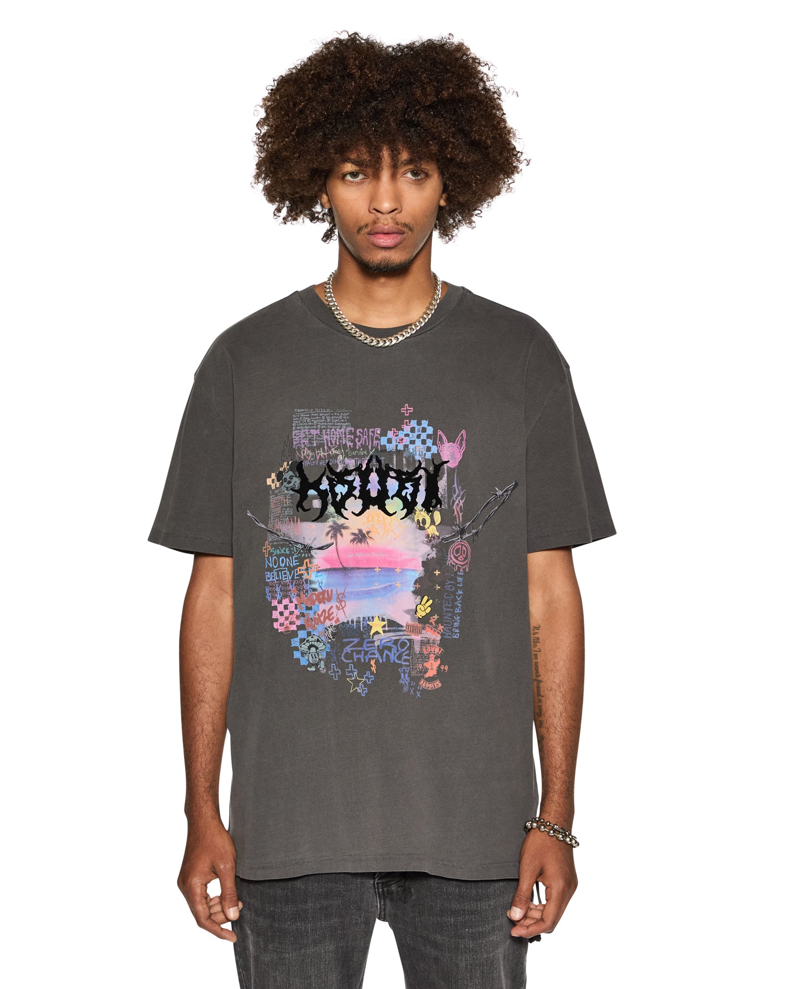 The Vandals Biggie Ss Tee Faded Black is an oversized short sleeve t-shirt made from a premium cotton blend in a faded black. This style features a raw cut back hem. Ksubi dollar sign embroidery and signature T-box branding.